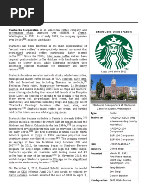 Starbucks corporation is an american multinational chain of coffeehouses and roastery reserves headquartered in seattle, washington.