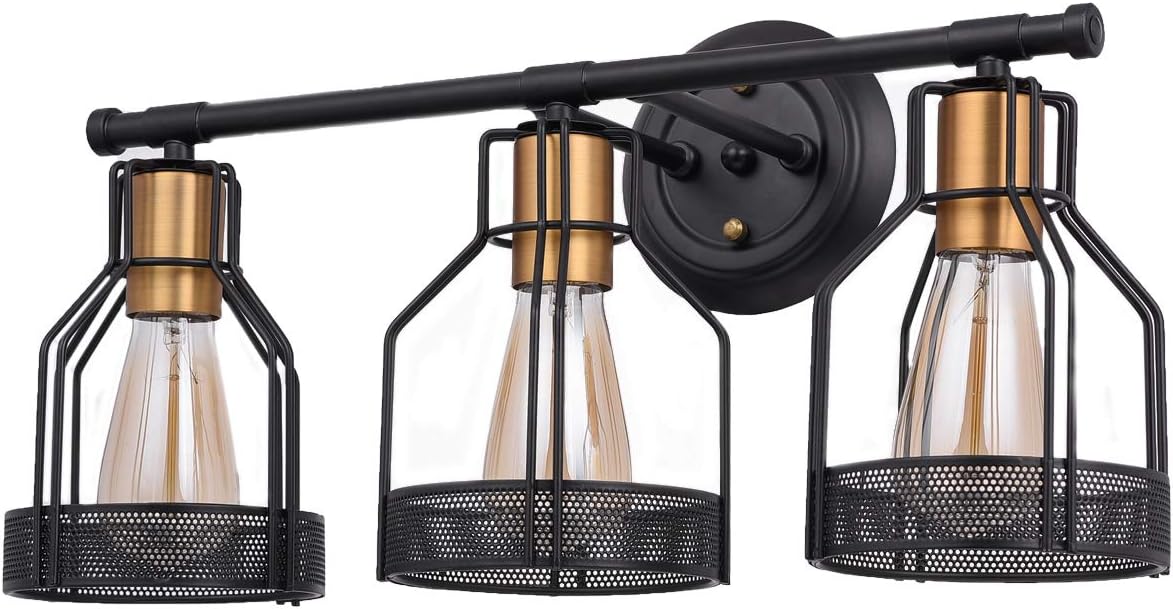 Stepeak rustic bathroom vanity lights fixture, 3 wire cages industrial wall sconce with plug in cord and farmhouse setting.